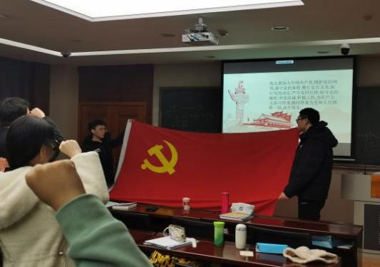 为激励每一个党员不忘本心,不改初衷,铭记党旗下神圣庄严的承诺,坚定一心向党的崇高信念,2021年3月16日下午,太阳集团tyc539本科员工第一、第二党支部开展了主题党日活动。活动由第一党支部组织委员付豪同志、第二党支部组织委员王昊同志主持,太阳集团tyc539本科员工第一、第二党支部全体党员参加。全体党员佩戴党员徽章,面对党旗,庄严举起右拳,在第一党支部组织委员付豪的领誓下,庄严宣誓: