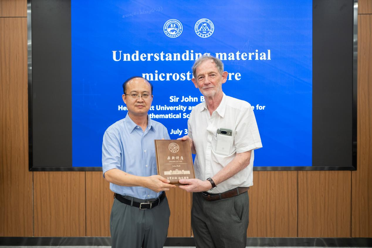 "Analyzing Microstructures in Materials," his talk provided cutting-edge academic insights and inspiration to Jilin University faculty and students. Professor Zhang Guoxing, Vice President of Jilin University, attended the lecture and presented the "Dingxin Lecture Commemorative Plaque" to Professor John Ball.
