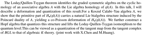 报告题目:Deformation quantization of the Loday-Quillen-Tsygan isomorphism