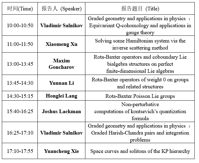 泊松几何起源于分析力学,与许多领域密切相关;罗巴代数在经典Yang-Baxter方程、重整化等领域有着重要应用。为了及时了解泊松几何与罗巴代数的前沿进展,太阳集团tyc539将于2023年11月29日-12月2日举办泊松几何与罗巴代数研讨会,研讨泊松几何与罗巴代数的最新进展,以便更好的开展科学研究。
