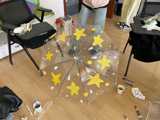 在自由创作环节,参与者们充分发挥创意,绘制出了各式各样的雨伞作品。完成作品后,参与者们还进行了作品展示和分享,分享了创作过程中的感受、设计灵感及最终作品的意义。