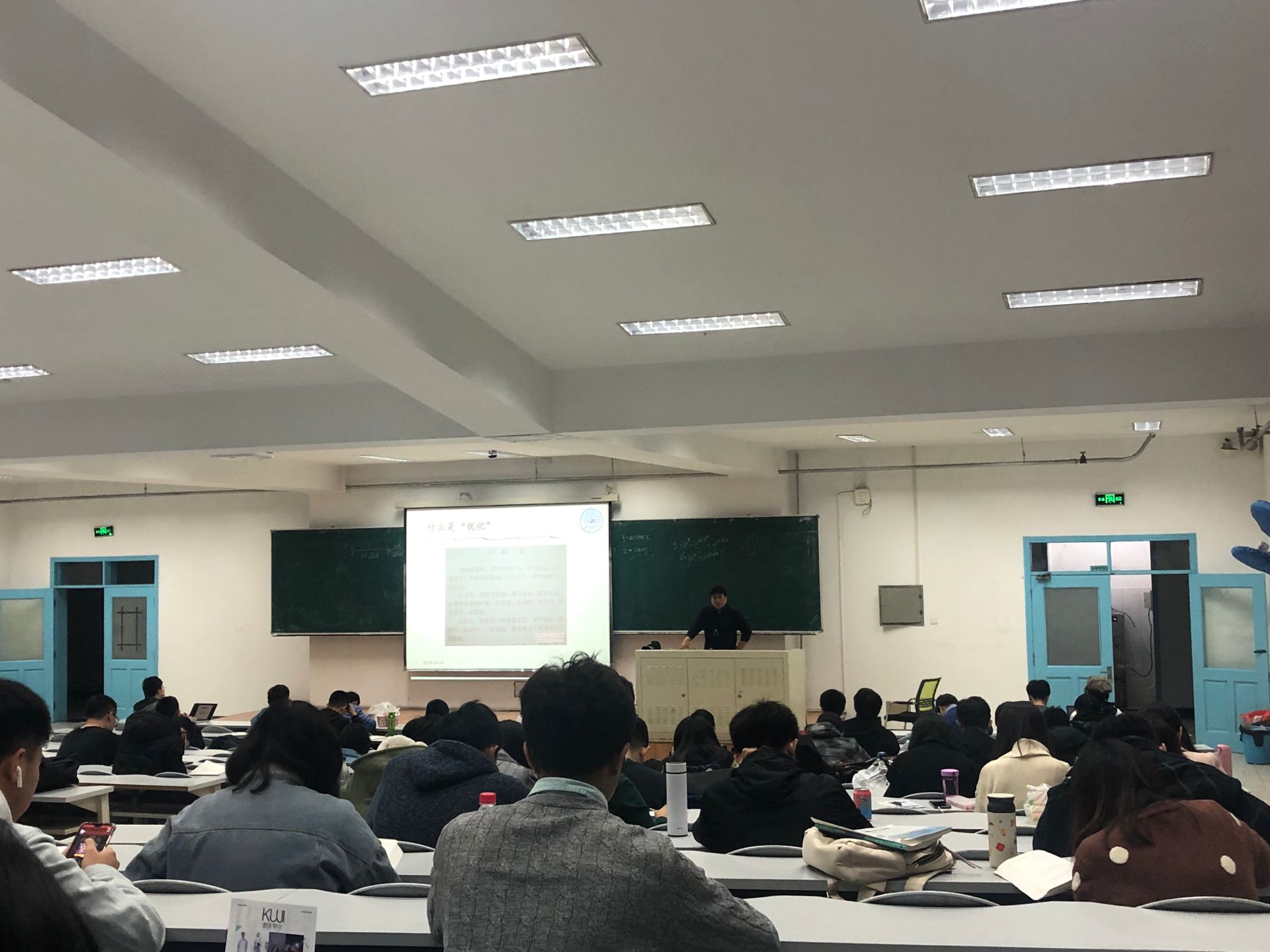这一次我们荣幸地邀请到了应用数学系的徐旭教授来给同学们讲解。首先,徐旭教授利用生活中泡茶、送快递的等例子讲了什么是优化,进而给出了优化的数学表示形式。然后徐旭教授通过优化的研究范围、优化的别名来引出优化在生活各行各业的应用和就业的岗位,总结得到运筹与控制学极大地改变了人工智能的发展,让同学们更能了解人工智能需要做出的改变。后来徐旭教授用AlphaGo与柯洁等人的对抗和无人驾驶车的例子让同学们在了解了近代人工智能的发展程度,从而给出人工智能的定义和涉及的领域。在徐旭教授介绍完人工智能技术在人脸识别、语音识别等领域的应用后,浅谈了人工智能最重要的算法之一——深度神经网络的结构以及训练过程,揭开了神经网络神秘的面纱,让同学们感受到了人工智能的魅力。