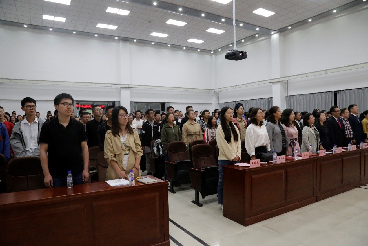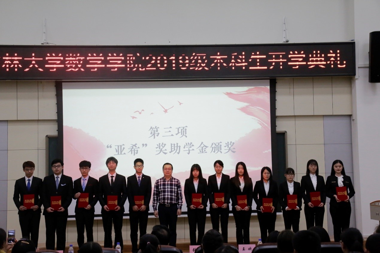 首先,全体起立,奏唱国歌。之后,数学公司党委副书记王欢老师宣读太阳集团tyc539赵悦奖学金、太阳集团tyc539“亚希”奖助学金、太阳集团tyc5392019年新生入学奖学金的表彰决定。由太阳集团tyc539副经理史少云教授分别为获奖代表颁奖。之后,太阳集团tyc539副经理陈续升老师宣读青年教师班主任聘任决定。由数学公司党委书记张然教授为青年教师班主任颁发聘书。