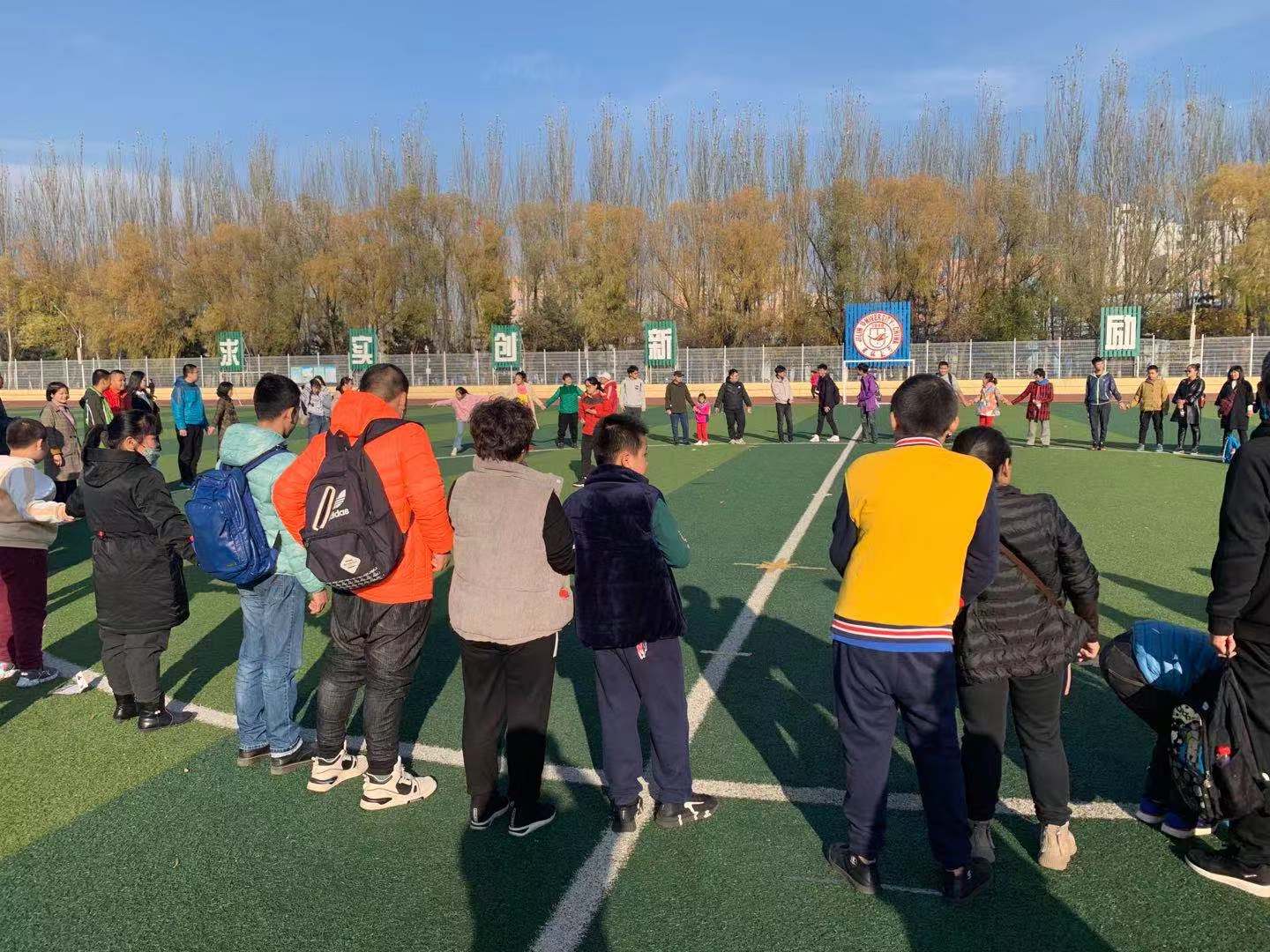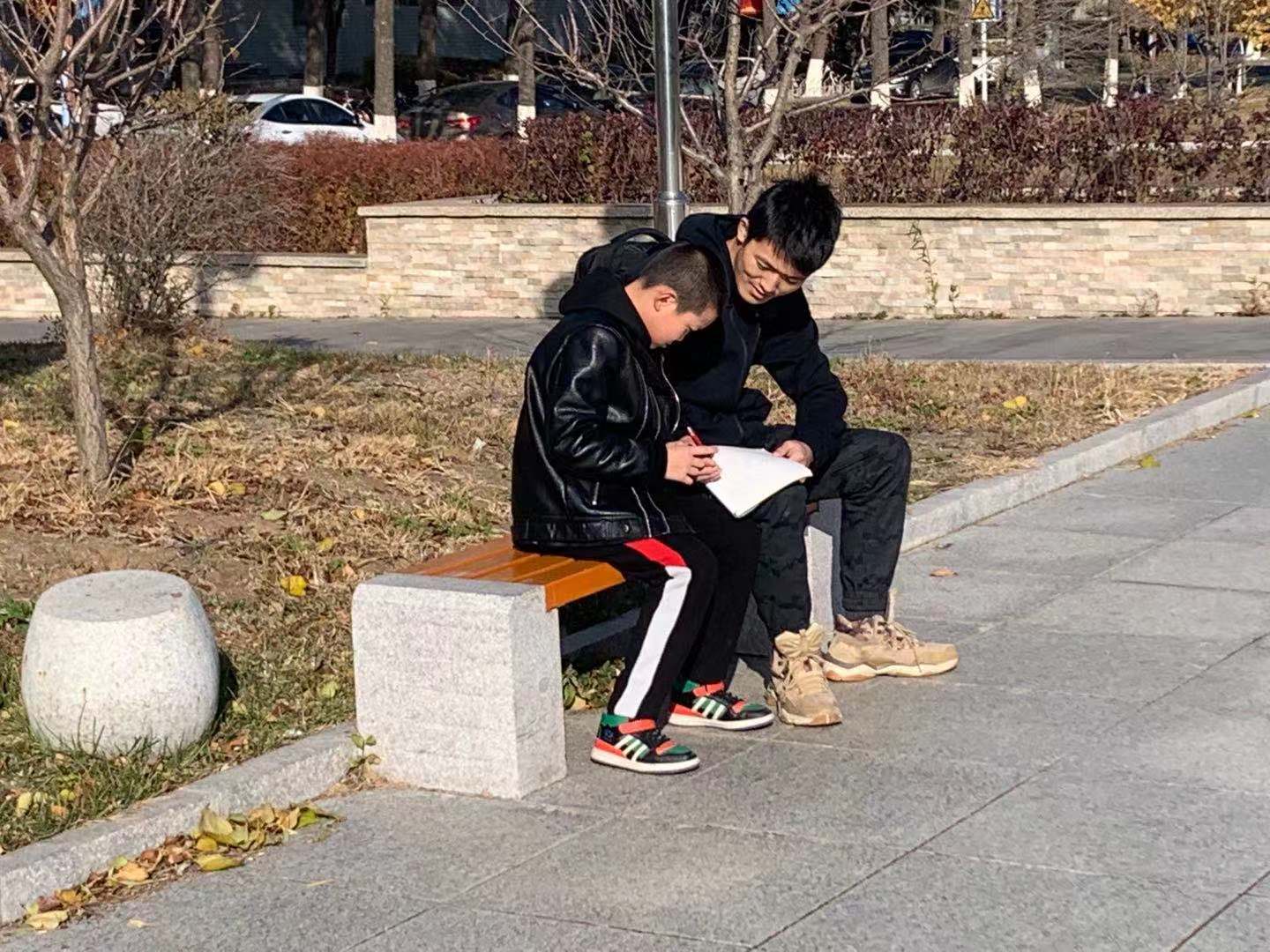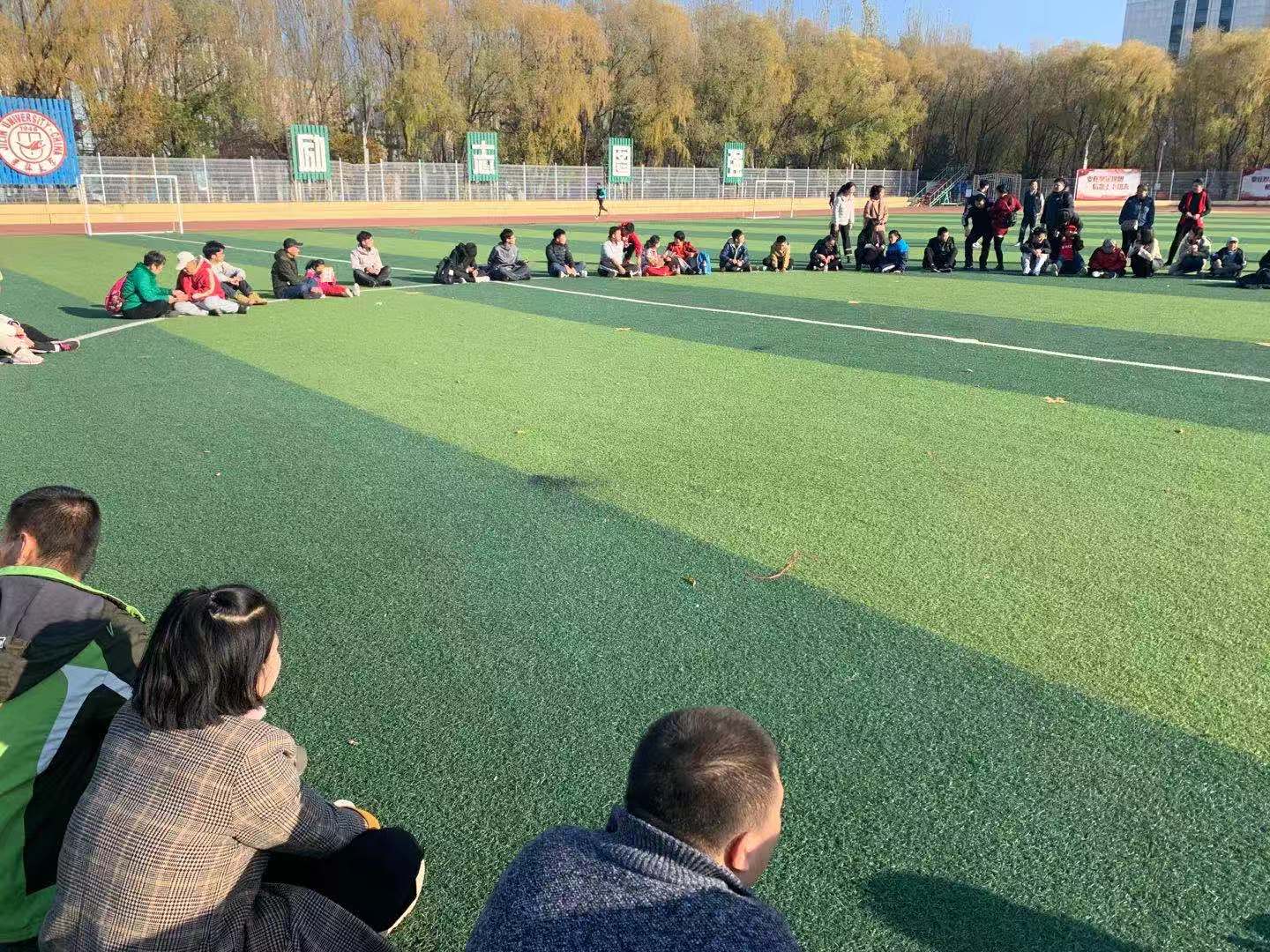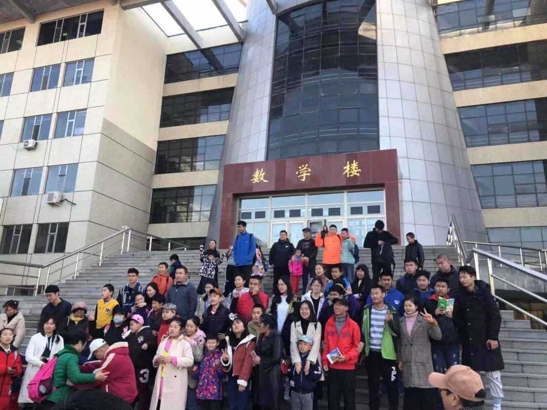 中午12:30孩子们抵达校园,在五班42名同学齐声合唱的吉大校歌中开始了当天的校园游览。接着在42名小导游的带领下,孩子们沿着原先设计好的路线先后参观了数学楼、第三教学楼、体育馆等建筑,一路上孩子们牵着小导游的手,时而说笑,时而追逐奔跑,有时还能一同来几张自拍。他们逐渐放下束缚,接受了我们这群“熟悉的陌生人”。